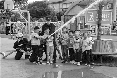 近日,甘肅省臨澤縣消防救援大隊消防指戰(zhàn)員,走進臨澤縣濱河幼兒園開展消防知識宣傳暨安全疏散演練。他們?yōu)槔蠋熀秃⒆觽冎v解消防安全常識,告訴孩子們預(yù)防火災(zāi)發(fā)生的重要性,以及遇到火災(zāi)后正確的逃生方法,增強了孩子們的消防安全意識和自防自救能力。圖為消防指戰(zhàn)員現(xiàn)場指導孩子們水槍的正確使用方法,孩子們也過了一把“消防癮”。本報記者 尹曉軍 通訊員 劉自新 李志欣 攝