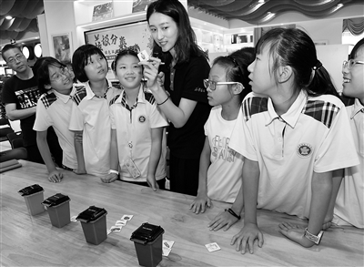 當(dāng)日,山東青島嘉峪關(guān)學(xué)校的學(xué)生來(lái)到棧橋書(shū)店暑期課堂,參加垃圾分類(lèi)科普教育活動(dòng)。通過(guò)講座、垃圾分類(lèi)測(cè)試賽等,學(xué)生們學(xué)習(xí)垃圾分類(lèi)知識(shí),培養(yǎng)垃圾分類(lèi)的良好習(xí)慣。