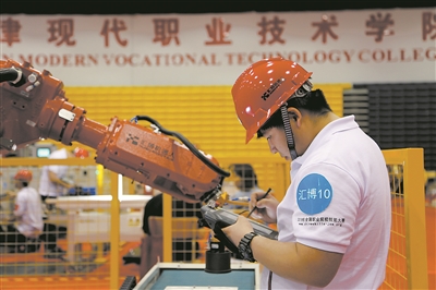 我國職業(yè)教育發(fā)展進入黃金期。調(diào)查數(shù)據(jù)顯示,在現(xiàn)代制造業(yè)、戰(zhàn)略性新興產(chǎn)業(yè)和現(xiàn)代服務(wù)業(yè)等領(lǐng)域,一線新增從業(yè)人員70%以上來自職業(yè)院校,職業(yè)教育大規(guī)模培養(yǎng)技術(shù)技能人才的能力不斷增強。