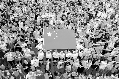 “今天是你的生日,我的中國(guó),清晨我放飛一群白鴿……”“祖國(guó),我愛你”的歌聲和吶喊聲此起彼伏,全國(guó)大中小學(xué)師生同唱一首歌《今天是你的生日,中國(guó)》,向祖國(guó)獻(xiàn)禮,祝福新中國(guó)。