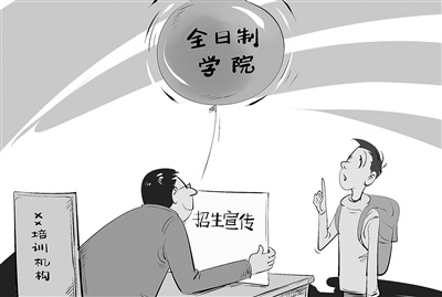 《揚(yáng)子晚報(bào)》報(bào)道,近日,有市民向媒體反映,自己的孩子上的“學(xué)院”竟然是個(gè)培訓(xùn)機(jī)構(gòu),其實(shí)是在讀一個(gè)三年制的成人中專課程。學(xué)院當(dāng)初的簡介中寫道“學(xué)校現(xiàn)有全日制學(xué)生2500多人,其中本科學(xué)生1500多人,中專生1000多人”,一些家長以為該校是一所全日制學(xué)校,等孩子上了之后,才知道這所學(xué)校既不是全日制的大專、本科院校,也不屬于全日制的中職、中技學(xué)校,而是一個(gè)培訓(xùn)機(jī)構(gòu)。