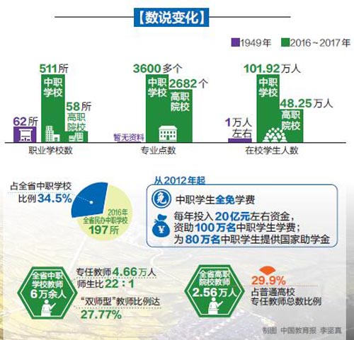 70年來,四川充分發(fā)揮職業(yè)教育在改善民生、脫貧攻堅(jiān)工作中的重要作用,實(shí)現(xiàn)了民族地區(qū)職業(yè)教育發(fā)展從無到有,貧困地區(qū)職業(yè)教育發(fā)展提質(zhì)增速,貧困地區(qū)及貧困人口的文化素養(yǎng)和技能水平不斷提高。職業(yè)教育成為四川阻斷貧困代際傳遞、服務(wù)精準(zhǔn)扶貧的重要“先手棋”。