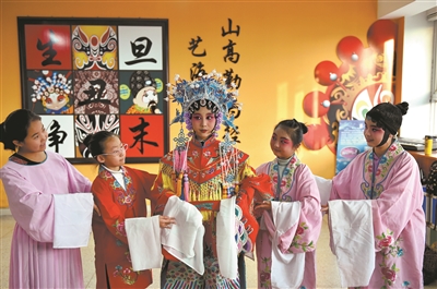 10月21日,山西省太原市大南關(guān)小學(xué)學(xué)生在練習(xí)戲曲動(dòng)作。近年來(lái),該校將戲曲文化引進(jìn)校園,邀請(qǐng)專業(yè)老師為學(xué)生講解戲曲知識(shí),讓學(xué)生感受傳統(tǒng)文化魅力。
