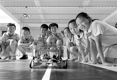 近年來,山東省淄博市張店區(qū)祥瑞園小學(xué)在全校開設(shè)了“人人皆創(chuàng)客”的普及性課程,激發(fā)學(xué)生“愛科學(xué)、學(xué)科學(xué)、用科學(xué)”的熱情,讓學(xué)生在動手操作中“玩轉(zhuǎn)”科技,體驗創(chuàng)新樂趣。張桂玲 本報記者 張學(xué)軍 攝