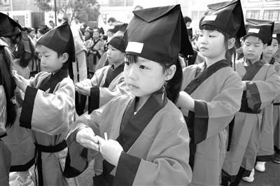 過欞星門、敬拜孔子、向老師敬茶、朱砂開智、開筆習(xí)禮等傳統(tǒng)儀式,讓孩子們切身體驗(yàn)了傳統(tǒng)文化的魅力。日前,浙江省常山縣閣底中心小學(xué)舉行祭孔典禮暨新生開筆禮,學(xué)校全體師生及新生家長共1000多人參加。