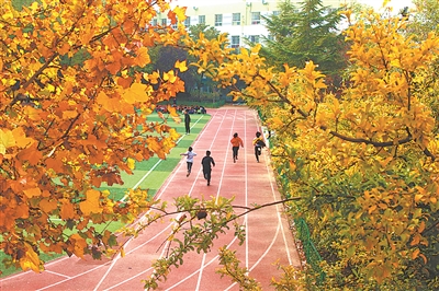 河南省鄭州市金水區(qū)中方園雙語學校秋景。李顏召 攝