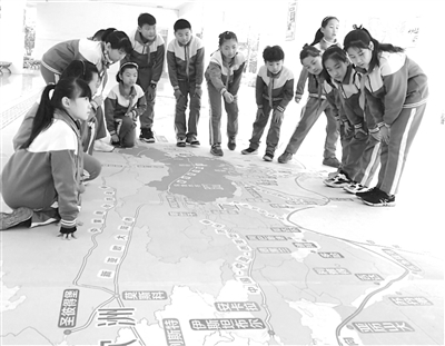 山東省淄博市張店區(qū)實(shí)驗(yàn)小學(xué)四年級(jí)以“一帶一路”為主題開(kāi)展項(xiàng)目學(xué)習(xí)。圖為學(xué)生在教師指導(dǎo)下,在學(xué)校校園地面上彩繪的“一帶一路”地圖上探尋古絲綢之路的起源,了解“一帶一路”提出的時(shí)代背景及意義,看“一帶一路”給國(guó)家?guī)?lái)的發(fā)展變化,暢想“一帶一路”的美好未來(lái)。