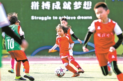 江蘇省常州市雕莊中心小學在開展校園足球運動過程中,堅持“內(nèi)外”結合,每周每班上一節(jié)足球課,定期組織校內(nèi)足球聯(lián)賽,每學年舉辦足球文化節(jié),圍繞足球創(chuàng)作手抄報、開展知識講座、展示球藝、進行趣味比賽等。圖為該校學生在進行足球對抗訓練。本報記者 鮑效農(nóng) 攝