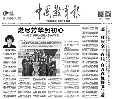 對(duì)外經(jīng)濟(jì)貿(mào)易大學(xué)因貿(mào)易強(qiáng)國(guó)而生,因?qū)ν忾_放而興,因全面深化改革而盛,因新時(shí)代對(duì)外開放事業(yè)而新,與國(guó)家經(jīng)濟(jì)社會(huì)發(fā)展同向同行。在建校初期,學(xué)校教師就有著厚重的家國(guó)情懷和濃烈的責(zé)任使命感,并一代代傳承下來(lái)。20多年前,當(dāng)我國(guó)的入世談判處于膠著的艱難時(shí)刻,一大批貿(mào)大學(xué)者,以畢生之積累、胸中之智慧,參與到國(guó)家發(fā)展的時(shí)代召喚中,為入世談判提供了有力的智慧支持;當(dāng)前在中美貿(mào)易摩擦不斷升級(jí)之時(shí),一大批貿(mào)大學(xué)者積極亮劍發(fā)聲,闡述我國(guó)堅(jiān)定推進(jìn)開放進(jìn)程,推動(dòng)經(jīng)濟(jì)全球化健康發(fā)展的中國(guó)主張。這些新老學(xué)者早已把個(gè)人前途命運(yùn)與國(guó)家和民族的前途命運(yùn)緊密相連。于瑾老師身上賡續(xù)的這種精神血脈,正是一代代對(duì)外經(jīng)濟(jì)貿(mào)易大學(xué)教師群體在長(zhǎng)期堅(jiān)持教書育人過(guò)程中凝練出的貿(mào)大精神。于瑾老師用她短暫而精彩的一生,把個(gè)體奮斗匯入實(shí)現(xiàn)教育強(qiáng)國(guó)的時(shí)代洪流中,心懷家國(guó),教書育人,書寫下俯仰無(wú)愧時(shí)代的人生篇章。