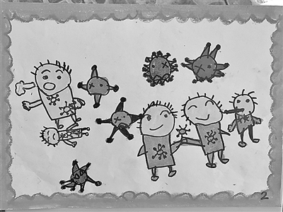 所有醫(yī)生團(tuán)結(jié)一致、精心實(shí)驗(yàn),終于找到了戰(zhàn)勝病毒的方法,病毒被打敗了。