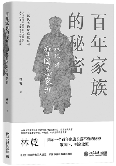“晚清名臣”曾國藩被譽(yù)為“立德立功立言三不朽、為師為將為相一完人”。他的學(xué)問、文章兼收并蓄,事業(yè)、家庭兼顧完美,做到了儒家倡導(dǎo)的“修身、齊家、治國、平天下”。筆者對曾國藩的為人為學(xué)仰慕已久,這本由北京大學(xué)出版社出版的《百年家族的秘密——林乾講曾國藩家訓(xùn)》新書甫一到手便放在床頭,成為每晚必讀之書。新冠肺炎疫情帶來的超長假期,讓宅在家中的我有時間讀完了整本書。感覺這本書不僅是持家教子的智慧書,也是讀書做人的必備書。