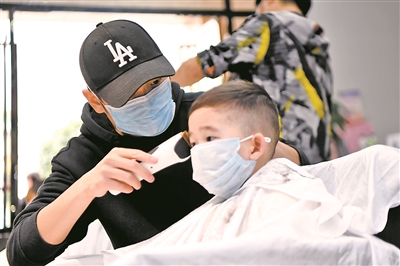 2月24日,在長(zhǎng)沙一理發(fā)店內(nèi),理發(fā)師在為小朋友理發(fā)。當(dāng)日是農(nóng)歷二月初二,民間有“二月二,剃龍頭”的傳統(tǒng)習(xí)俗,一些市民來(lái)到理發(fā)店理發(fā)。近日,長(zhǎng)沙部分理發(fā)店在做好新冠肺炎疫情防控的前提下,已有序恢復(fù)營(yíng)業(yè)。