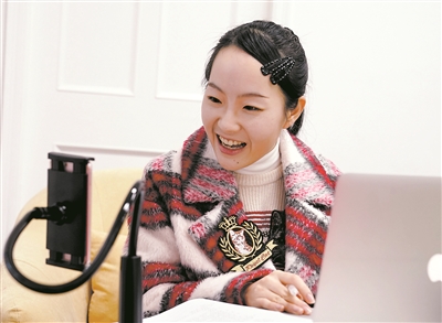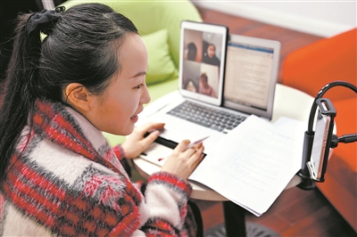 圖為上海市盧灣中學(xué)六(五)班的班主任陳溦雯與學(xué)生圍繞防疫主題開(kāi)展一堂“云班會(huì)”。