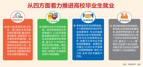 加大重點(diǎn)領(lǐng)域招錄,鼓勵(lì)畢業(yè)生入伍參軍,鼓勵(lì)面向基層就業(yè),加快完善落實(shí)就業(yè)創(chuàng)業(yè)政策
