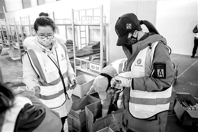 1月30日,得知武漢市青山區(qū)春暉社會工作服務(wù)中心招收民間志愿者,陶夢婷報名成為其中一員。她每天的工作都是“體力活”,將各地馳援的各類物資卸下來,再按要求分裝至各單位運輸車輛上。