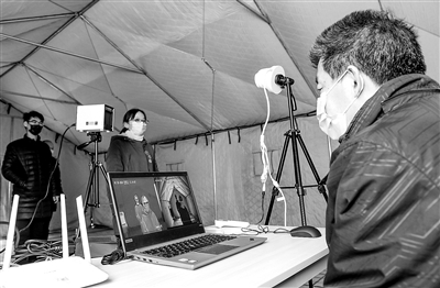 近日,山東省淄博市臨淄區(qū)稷下小學(xué)校門口,工作人員在安裝調(diào)試紅外線熱成像儀。為做好學(xué)校復(fù)學(xué)后新冠肺炎疫情防控工作,臨淄區(qū)為全區(qū)較大規(guī)模中小學(xué)、幼兒園配備了50臺熱成像儀,為其他學(xué)校和幼兒園配備紅外線體溫計600個,以保障師生身體健康。崔德廣 攝