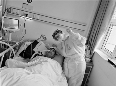 “由于病情過重,很遺憾我們最終沒能留住他。那一刻作為醫(yī)者,內(nèi)心的無力和悲痛難以言語。當(dāng)時,更理解了身上的責(zé)任和使命?!痹诟綦x服的密閉空間里,王奔每查5個病人就得休息10分鐘。有一位患者看到了,對他豎起大拇指說“小伙子年輕人,有擔(dān)當(dāng)”,患者的鼓勵讓他內(nèi)心充滿力量。