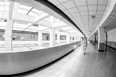 圖二 5月6日,工作人員在河北唐山遵化市陽光燕山學(xué)校教學(xué)樓走廊進行消殺。