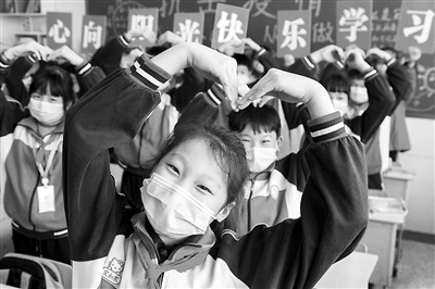 圖為浙江湖州長興四小學(xué)生在做手語操。復(fù)課后,該校以心理輔導(dǎo)主題班會的形式消除學(xué)生在疫情期間產(chǎn)生的心理困擾。許斌華 攝