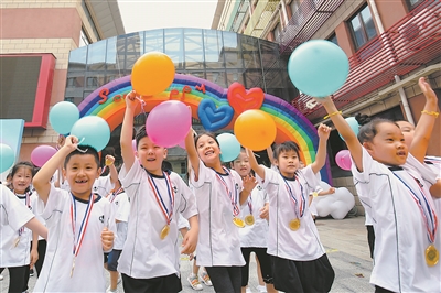8月29日,北京市東城區(qū)崇文小學(xué)一年級(jí)學(xué)生們胸前掛著“入學(xué)紀(jì)念牌”參觀校園,開啟小學(xué)生活。當(dāng)日,北京市中小學(xué)采取分批、錯(cuò)峰開學(xué)的方式拉開新學(xué)年的帷幕。