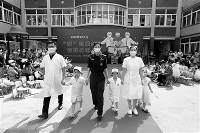 近日,安徽省阜陽市育才幼兒園的開學典禮以“疫路英雄,在我身邊”為主題進行,近60名戰(zhàn)斗在疫情一線的家長代表受邀參加了此次活動,引導幼兒從小厚植家國情懷,努力培養(yǎng)有擔當?shù)臅r代新人。