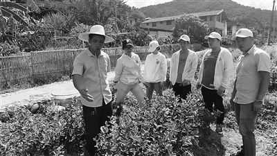 圖為永泰縣白杜村村干部向隊(duì)員介紹茉莉花種植情況。