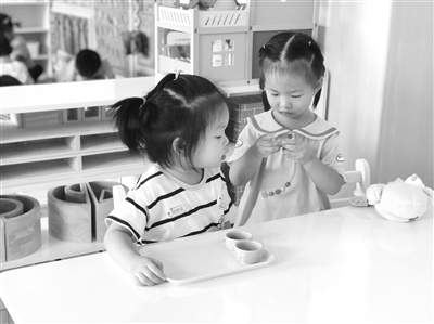 例如,為鍛煉幼兒精細(xì)動(dòng)作的發(fā)展,我們創(chuàng)設(shè)了舀方珠子、舀圓珠子的活動(dòng),難度不同,幼兒可以從易到難,或根據(jù)自己的能力選擇。
