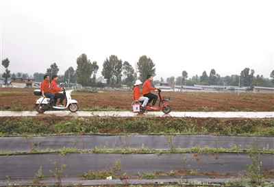 日前,四川農(nóng)業(yè)大學(xué)農(nóng)學(xué)院研究生馮豪杰(右一)、徐馳(右二)、朱嘉心(右三)和嚴奉君,拿著農(nóng)具和馬鈴薯種薯騎行前往布拖縣布江蜀豐農(nóng)業(yè)科技示范園的試驗田。