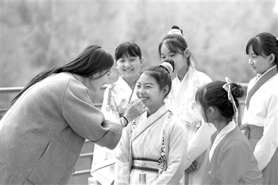 近日秋高氣爽,河北省邢臺(tái)市內(nèi)丘縣北嶺中心小學(xué)開展做知書達(dá)“禮”好少年活動(dòng),學(xué)生化身網(wǎng)絡(luò)“小主播”,穿漢服、行漢禮,在室外拍攝短視頻,借助網(wǎng)絡(luò)載體,讓全校學(xué)生感受中國(guó)傳統(tǒng)禮儀的魅力。