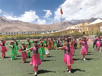 無獨(dú)有偶,在克孜勒蘇州阿克陶縣,有一個(gè)距離縣城400多公里的塔爾塔吉克民族鄉(xiāng)。為了讓這里的241個(gè)孩子能像城里孩子一樣接受到良好教育,塔爾塔吉克民族鄉(xiāng)學(xué)校新建了教學(xué)及輔助用房,改善了學(xué)校辦學(xué)條件,孩子們坐進(jìn)了寬敞明亮、設(shè)備先進(jìn)的教室,接受更加公平更有質(zhì)量的教育。在和田地區(qū)策勒縣固拉哈瑪鎮(zhèn)小康新區(qū)小學(xué),232名學(xué)生中179名來自昆侖山里的搬遷戶家庭。在這所新學(xué)校里,孩子們吃著免費(fèi)的飯食,穿著免費(fèi)的校服,在教室里使用現(xiàn)代化的教學(xué)設(shè)備,在塑膠跑道上奔跑玩耍,再也不用擔(dān)心以往的土操場上漫天的黃沙落滿衣服、頭發(fā)。