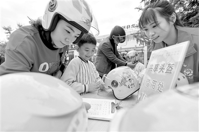 近日,浙江省湖州市長(zhǎng)興縣龍山幼兒園門口,家長(zhǎng)在進(jìn)行共享頭盔信息登記。每天放學(xué)期間,幼兒園擺設(shè)“共享頭盔”領(lǐng)取點(diǎn),無償提供給忘記佩戴頭盔的幼兒及家長(zhǎng)24小時(shí)內(nèi)使用,確保文明出行、安全騎行。譚云俸 攝
