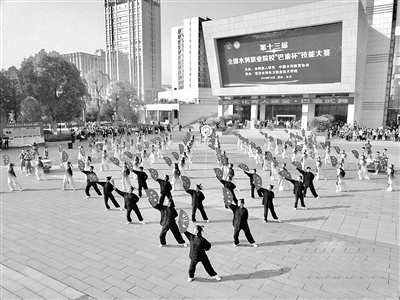 巴渝武舞可追溯至神話故事伏羲母親華青氏編創(chuàng)的巫雛舞,先經(jīng)女媧,后由嘉陵江支流巴郡土著傳承,并流傳至今?!度A陽國志·巴志》云:“周武王伐紂,實得巴蜀之師,著乎《尚書》。巴師勇銳,歌舞以凌殷人,前徒倒戈,故世稱之曰:武王伐紂,前歌后舞也。”巴渝武舞蘊含了深厚的文化底蘊、強烈的時代氣息、濃郁的地方特色,充分展現(xiàn)了古代巴人勇猛奮進、銳氣昂揚、淳樸率直的性格及精誠團結(jié)的集體主義意識。學校通過研究、編排巴渝武舞,挖掘巴渝地區(qū)以巫文化為代表的水圖騰崇拜以及巴族人勇猛精進、奮斗無畏的精神內(nèi)核等本土文化品格,在極富強烈審美氛圍的感染下,達成舞者內(nèi)在情緒的群體自我激發(fā)、自我體驗、自我成長,培養(yǎng)學生勇于奉獻、敢于拼搏、銳意進取的職業(yè)精神,強化責任意識。