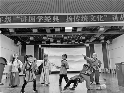 “同學(xué)們,你們聽(tīng)過(guò)蘇秦刺股的故事嗎?”“當(dāng)然啦!蘇秦為了集中精神專(zhuān)心讀書(shū)想到了用錐子刺大腿的辦法,他的勤奮和刻苦值得我們學(xué)習(xí)。”日前,湖北省武穴市師范附屬小學(xué)舉辦“講國(guó)學(xué)經(jīng)典 揚(yáng)傳統(tǒng)文化”講故事比賽活動(dòng)。參賽學(xué)生以戲劇表演方式,讓經(jīng)典人物在舞臺(tái)上“活”過(guò)來(lái),將蘇秦刺股、倉(cāng)頡造字、司馬光砸缸等國(guó)學(xué)故事娓娓道來(lái),在講與演中傳承中華優(yōu)秀傳統(tǒng)文化。