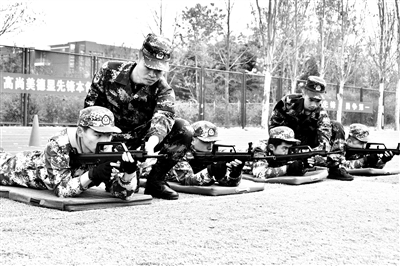 ?11月29日,山東科技大學舉辦大學生軍事技能競賽,退伍大學生“教官”正在指導師弟師妹模擬射擊訓練。當天,該校300余名大學生在60名退伍大學生教官指導下,依次完成隊列動作、射擊、徒手擒敵等項目,在競技中增長基本軍事技能、樹立國防觀念。