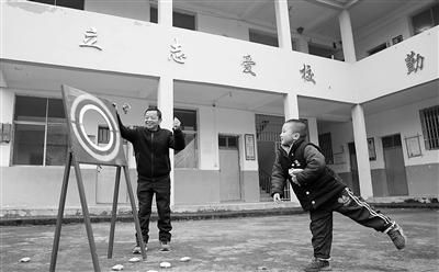 江西省黎川縣熊村鎮(zhèn)極高小學坐落在大山深處。1978年,江國南高中畢業(yè)后,從黎川縣城回到家鄉(xiāng)的極高小學,成為一名代課教師。此后42年的教學生涯里,他從未離開過大山里的孩子。隨著城鎮(zhèn)化進程的加快,越來越多的教師和學生選擇去外地任教或上學。到2019年9月,極高小學只剩下江國南和他唯一的學生江昊天。課堂授課,野外教學,趣味活動……師生二人的生活并不單調(diào)。“學校離不開我,我更離不開學校,這是我的家鄉(xiāng),也是孩子們夢想開始的地方?!苯瓏险f。圖為12月3日,江國南(左)陪江昊天做游戲。