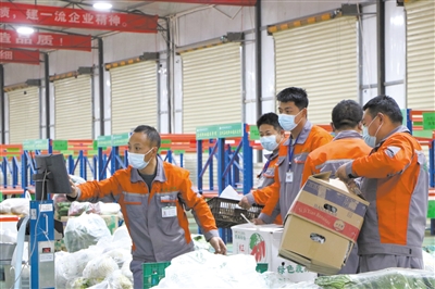此時(shí)位于蘭州市榆中縣定遠(yuǎn)鎮(zhèn)的“甘肅農(nóng)校對接”分揀中心,卻是燈火通明,一派緊張而忙碌的景象。10多名工人一邊熟練地分揀白菜、土豆、西紅柿等新鮮蔬菜,一邊有序稱重裝袋,搬運(yùn)至指定區(qū)域……