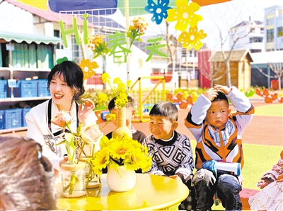 “春天在哪里,春天就在小朋友的眼睛里……”日前,浙江省龍泉市查田鎮(zhèn)中心幼兒園教師把心理游戲活動搬到了戶外,教師和孩子們圍成圓圈坐在操場上,通過“雨點變奏曲”“刮大風”等游戲,了解孩子的心理世界。
