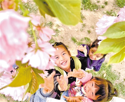 日前,河南省濮陽市華龍區(qū)油田金萌幼兒園的孩子們結(jié)伴賞櫻花。孩子們一起觀察、討論櫻花的形狀、大小、顏色、香味……好不熱鬧。荊璠 攝