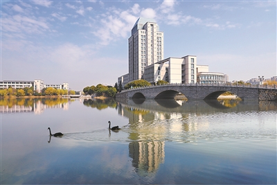 江南開學(xué)府,萬頃湖波揚(yáng)。雪浪山麓,蠡湖之畔,巍巍上庠,曲水流觴。江南大學(xué)之美,美在凝乎煙光的步步換景,美在止于至善的日日養(yǎng)新。三江初肇始,興教圖國強(qiáng);梁溪移講席,輕工著華章。胡奕 攝