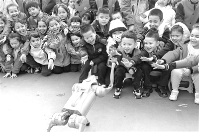 近日,新疆烏魯木齊市第一百二十小學(xué)學(xué)生與機(jī)器狗互動(dòng)。當(dāng)日,烏魯木齊市科技館科普小分隊(duì)走進(jìn)該校,開展科普宣傳進(jìn)校園系列活動(dòng),為學(xué)生們送上一堂生動(dòng)有趣的“科技+實(shí)踐”科普課。 孫振嵩 攝