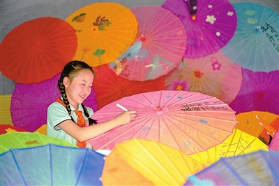 4月16日,安徽省合肥市廬陽區(qū)杏林小學(xué)學(xué)生在繪制非遺油傘。當(dāng)日,該校開展“彩繪童趣,傘上生花”主題活動,引導(dǎo)學(xué)生品味、體驗、傳播非遺之美,感受傳統(tǒng)文化魅力。