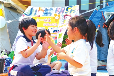 題圖為山東省青島市李滄區(qū)青山路幼兒園的小朋友在玩游戲。張鷹 攝