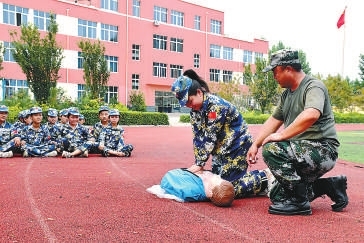 志愿者教授學(xué)生如何進(jìn)行心肺復(fù)蘇。