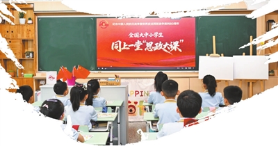上海市浦東新區(qū)張江高科實(shí)驗(yàn)小學(xué)學(xué)生在上抗戰(zhàn)主題“思政大課”。學(xué)校供圖