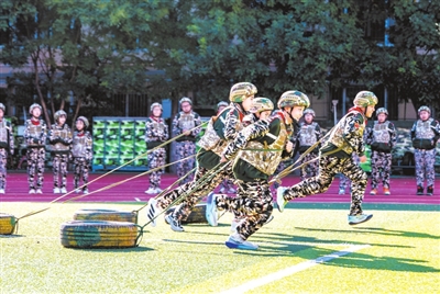 近日,內(nèi)蒙古呼和浩特市玉泉區(qū)五塔寺東街小學(xué)舉行“心系國(guó)防 強(qiáng)國(guó)有我”主題教育活動(dòng)。學(xué)生通過(guò)參與抗戰(zhàn)故事講述、戰(zhàn)術(shù)演示、涂彩偽裝等軍事技能挑戰(zhàn)項(xiàng)目,在親身實(shí)踐與沉浸式體驗(yàn)中增強(qiáng)家國(guó)情懷與國(guó)防安全意識(shí)。
