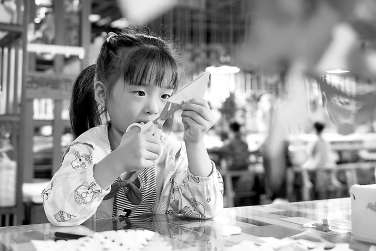 在重慶市北碚區(qū)縉云幼兒園創(chuàng)意工作坊,孩子們?cè)趯W(xué)習(xí)剪紙。 秦廷富 攝