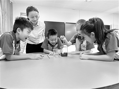 聊城市東昌府區(qū)英特學(xué)校的學(xué)生在教師的指導(dǎo)下做實(shí)驗(yàn)。學(xué)校供圖