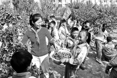 ②學(xué)生們?cè)趹?hù)外進(jìn)行瓜果采摘。 菏澤市牡丹區(qū)第二實(shí)驗(yàn)小學(xué)供圖