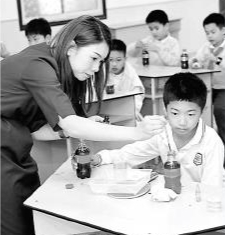 芙蓉區(qū)育才學(xué)校彭婷玉老師正在帶學(xué)生做科學(xué)實(shí)驗(yàn)。 資料圖片