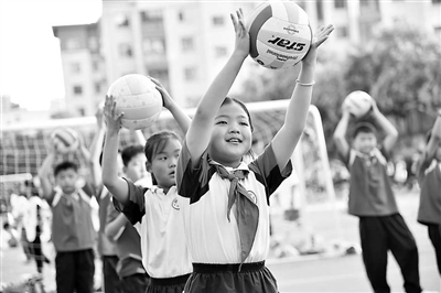2024年秋季學期以來,寶豐縣對全縣體育教師進行眼保健操、繩操專題培訓,對班主任、任課教師分批次進行學生體質(zhì)健康監(jiān)測培訓,將體育教學、陽光大課間實施納入城鄉(xiāng)一體化區(qū)域教研。此外,還招募家長志愿者337人,參與指導花樣跳繩、踢毽子、武術(shù)等特色體育項目,彌補了學校專業(yè)師資不足的短板。同時,加大場地建設(shè)和設(shè)施設(shè)備配置力度,投資300余萬元,為前營初中、香山路小學、張八橋鎮(zhèn)西火山小學等10所學校建設(shè)足球場4個、懸浮地膠籃球場7個,為縣一中教育集團、源豐中學、周莊鎮(zhèn)實驗小學等近20所學校配置了跳繩、足球、籃球、乒乓球臺等器材,并整修了縣三中、山河路小學、文峰街道馬街小學操場。各學校根據(jù)活動需要,自籌資金購置大繩、呼啦圈、繩梯、羊角球等各類體育器材。“我們學校建立了兩個五人制足球場,配備跳繩200多條、足球100多個,足球教育的條件趕上了縣城學校?!敝芮f鎮(zhèn)實驗小學體育教師龐海軍自豪地說。
